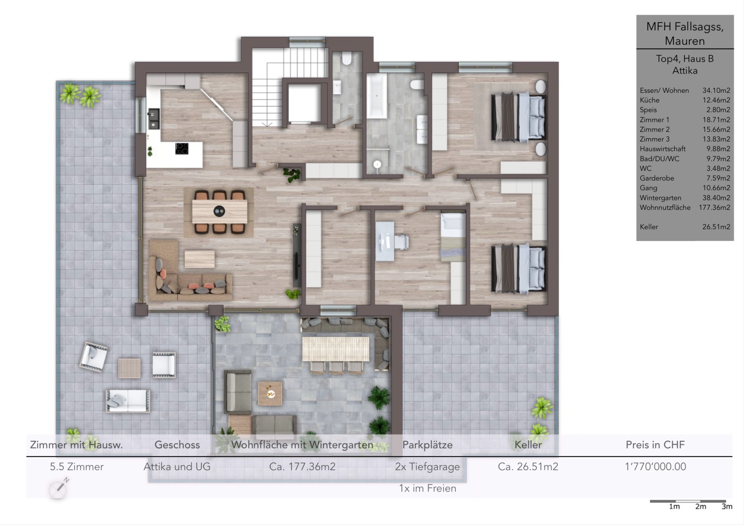 In der idyllischen Gemeinde Mauren entstehen moderne 4.5- und 5.5-Zimmerwohnungen mit lichtdurchfluteten Räumen, hochwertiger Ausstattung und grosszügigem Wintergarten. Jede Einheit verfügt über zwei Tiefgaragenplätze, einen Aussenparkplatz sowie ein Kellerabteil. Die Wohnungen sind noch im Bau, Käufer können den Innenausbau individuell mitgestalten. Die zentrale Lage verbindet Ruhe, Natur und eine hervorragende Anbindung. Einkaufsmöglichkeiten, Schulen und Freizeitangebote sind schnell erreichbar.