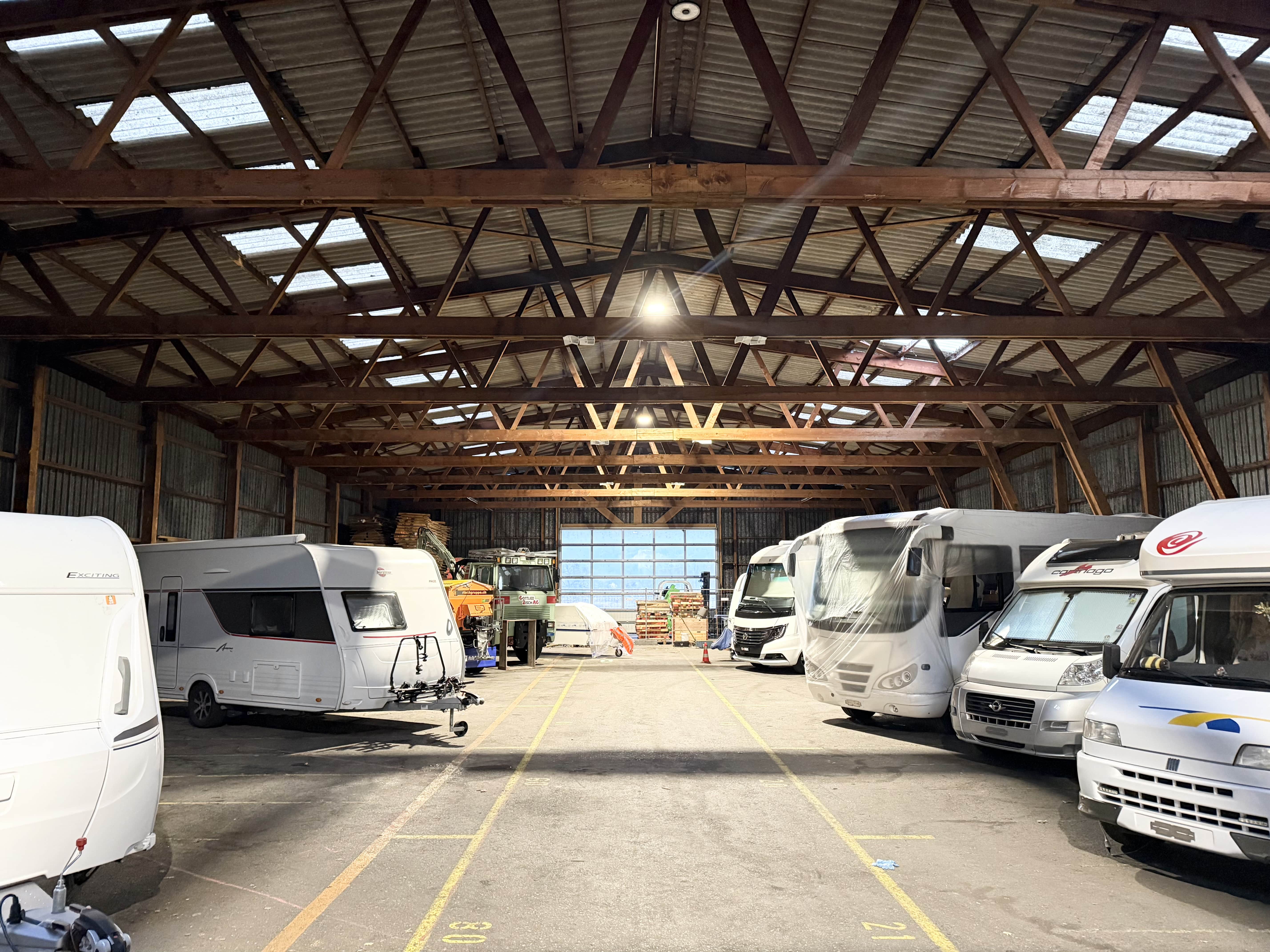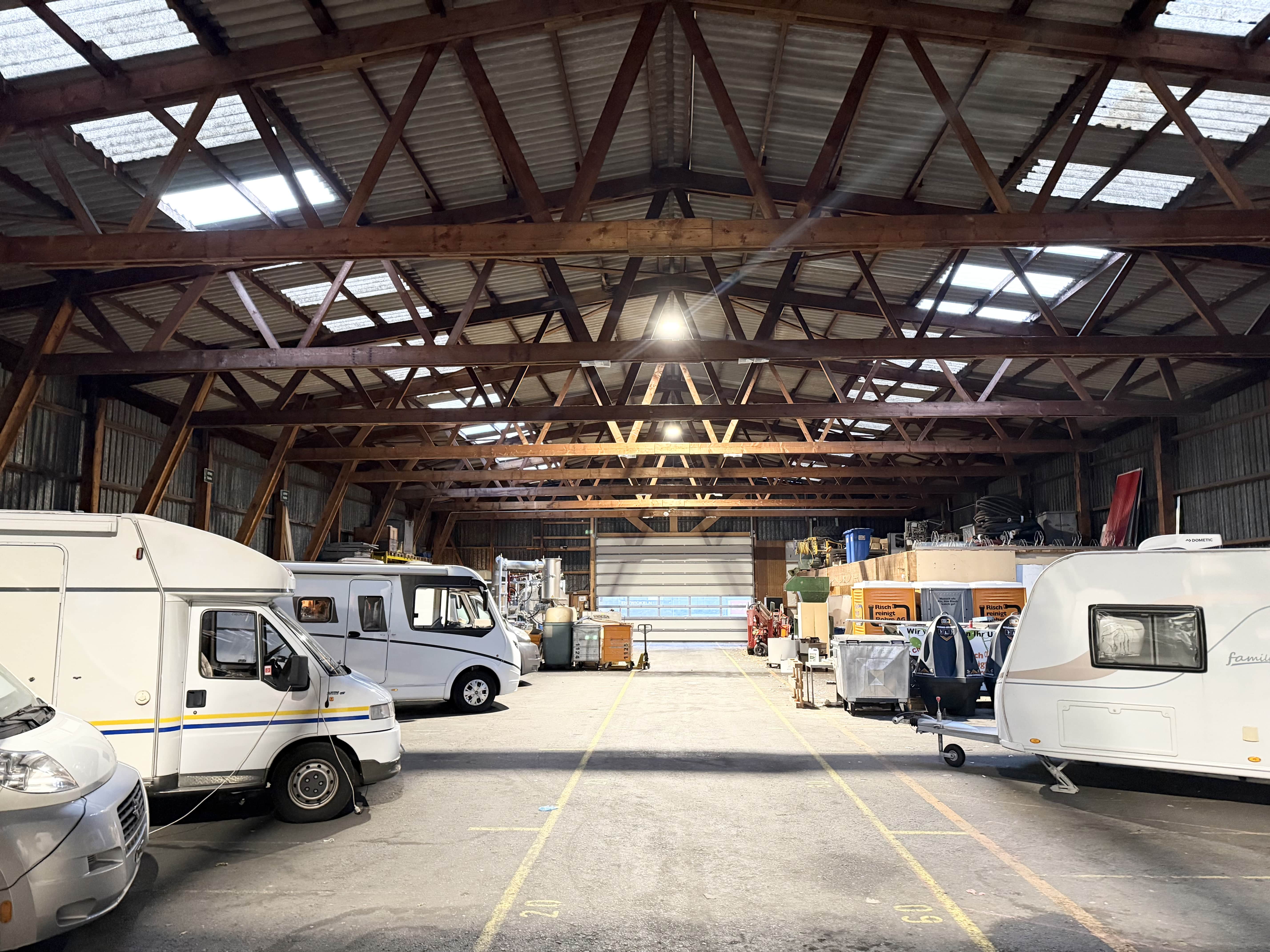 An der Guschastrasse in Sevelen vermieten wir eine funktionale und gut zugängliche Lagerhalle mit einer Gesamtfläche von 1’450 m², die ausschliesslich als Gesamteinheit zur Vermietung steht. Die Halle ist ebenerdig befahrbar und verfügt auf beiden Hallenseiten über je ein grosses Tor, sodass eine direkte Durchfahrt möglich ist. Dies ermöglicht eine effiziente Anlieferung sowie einen reibungslosen Warenumschlag. Mit einer Deckenhöhe von rund 5 Metern bietet die Fläche vielfältige Nutzungsmöglichkeiten. Zur technischen Ausstattung gehören Starkstromanschlüsse sowie ein Kaltwasseranschluss, wodurch sich die Halle auch für gewerbliche oder logistische Nutzungen eignet. Der nahe Autobahnanschluss garantiert eine sehr gute Erreichbarkeit und eine optimale Verkehrsanbindung.
